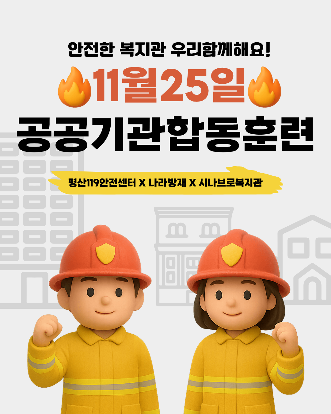 25.11.25.(화) 오전 10시경 공공기관 소방합동훈련 및 재난대응안전교육이 실시될 예정이오니