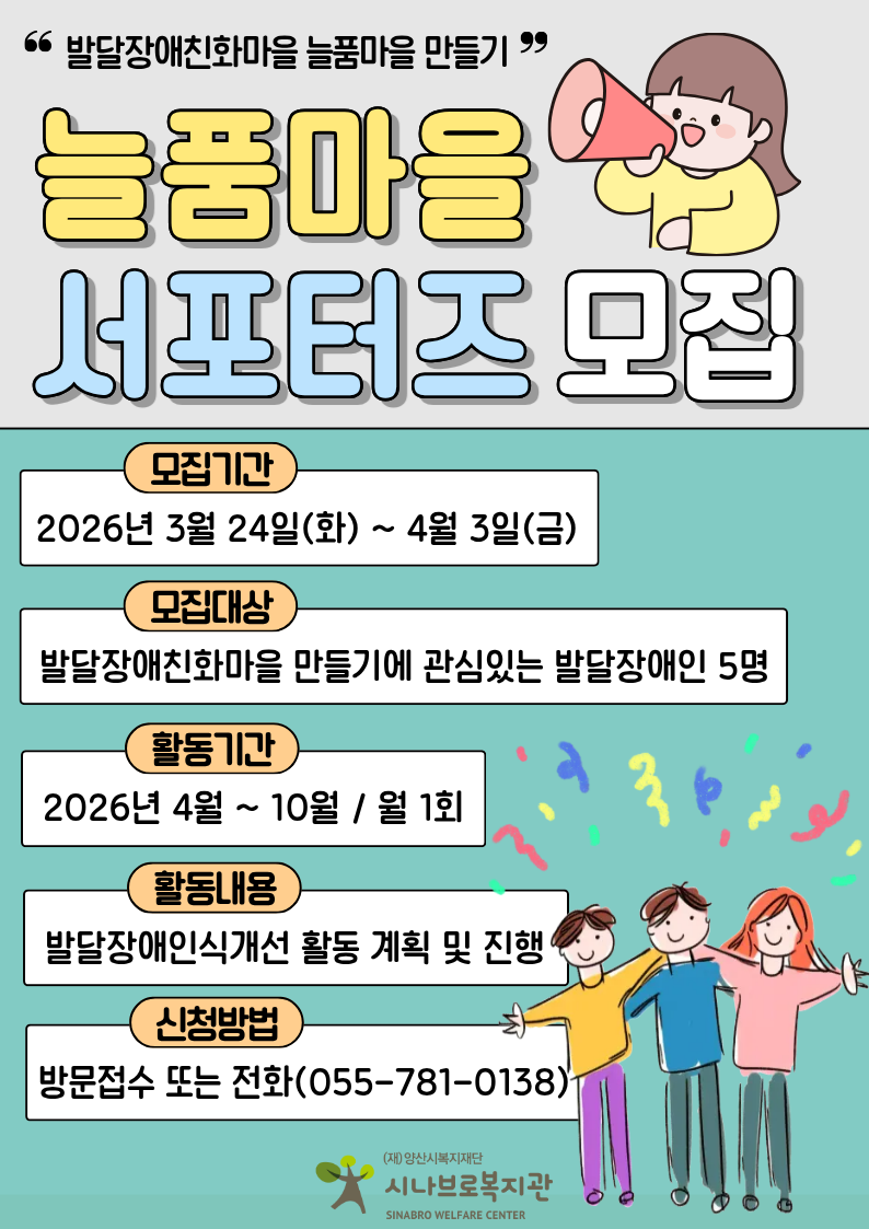 -모집대상 : 양산시 거주 중인 발달장애인 5명